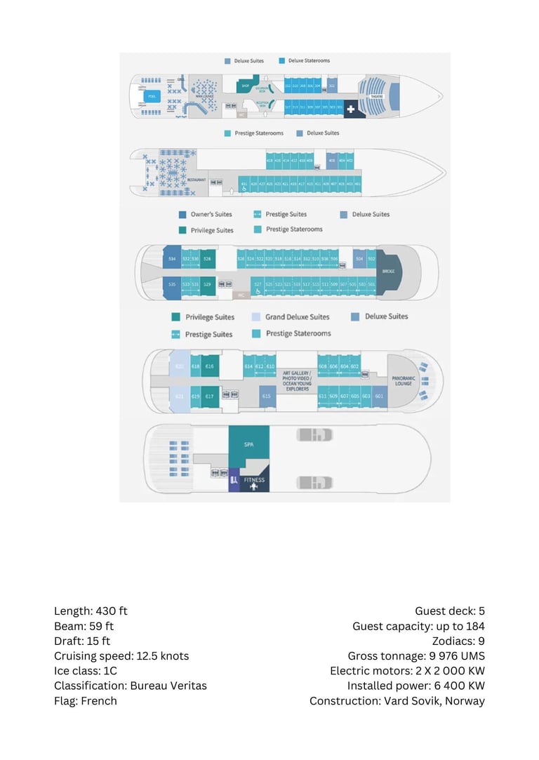 Le Bougainville is a luxury cruise vessel offering 92 stateroom cabins, each of which include either a private terrace or balcony