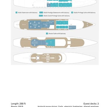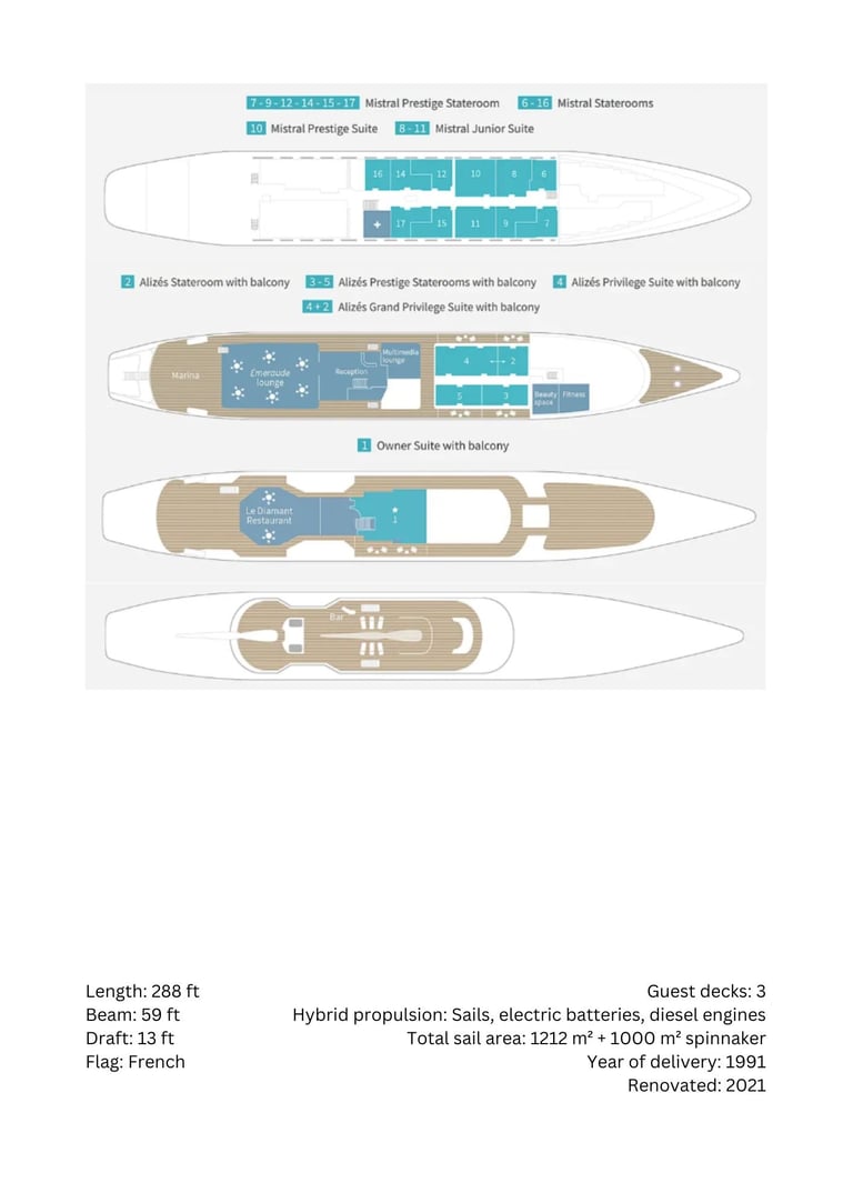 Le Ponant Has 16 high specification stateroom and suite cabins across three cabin decks.